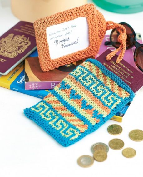 Have a chum that travels a lot? Knit them a delightful luggage tag and passport holder with our free pattern.