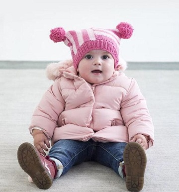 First up we have this precious set from Rico. Just like Archie’s hat, this design features two pom-poms. However, it also boasts a beautiful textured effect and a matching jacket! The royal blue shade is certainly fitting, but you could also experiment with soft pastels or perhaps a gender neutral colour if you are still waiting for your little bundle of joy to arrive. If you would like to knit this pattern, you can purchase the downloadable version for £2.99 from LoveCrafts. You can also visit LoveCrafts to find the relevant yarn and knitting equipment, so before you know it, this super-cute set will be well under way!