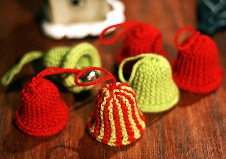 Scraps of yarn would be efficient enough to create one, or many, of these Christmas bells. Free pattern here.