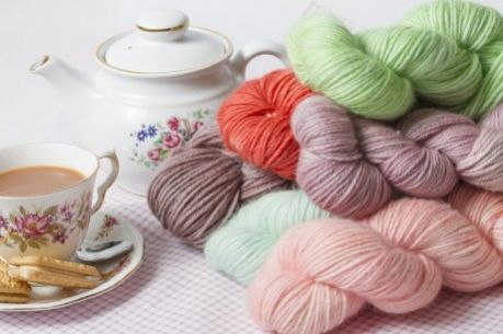 Baa Baa Brew is all hand dyed by me personally in my kitchen. It really is a hand crafted yarn. Each 100g skein is immersed in its own dye bath and left unagitated, allowing the dye to be absorbed naturally, producing very subtle variations in tone. The yarn is then air dried, wound, re-skeined and tied by hand with a Baa Baa Brighouse label and satin ribbon. The whole process can be quite time consuming but the quality of the product produced speaks for itself.