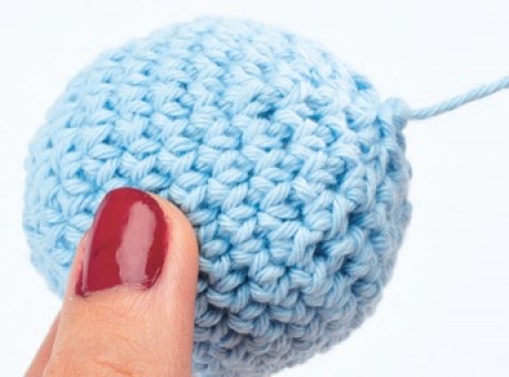 To Finish: It is easier to stuff your project just before you work the final round as the hill is quite tight by this point. When stuffed, work the last round and pull tightly to fasten off.
