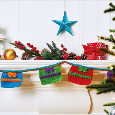 Gift wrapping can sometimes be a tricky affair, but that won’t be a problem with Sarah Louise Read’s cute crocheted bunting. Instead of the usual pennants, she’s created a set of colourful presents, complete with pretty bows! This project also features bobble stitch, allowing you to add a row of textured ‘ribbon’ to each parcel.