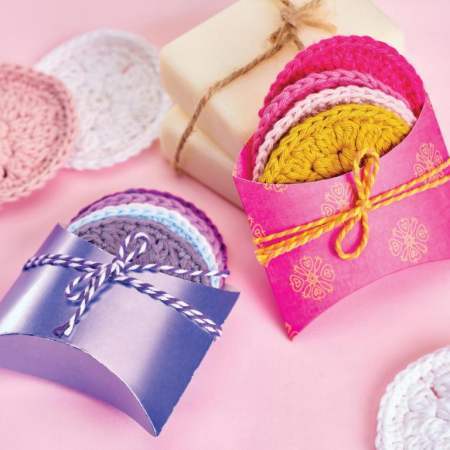 Wet wipes are yesterday’s news – these days we’re all about the face cloth! Beauty gurus such as Liz Earle recommend using these to remove your cleanser and gently exfoliate at the same time, leaving you with baby soft skin. Better still, you can crochet a set of Corinne Bradd’s stylish scrubbies from DK cotton yarn, either for yourself, a friend or a relative. Why not take it a step further by gifting your makes in made-to measure-packaging decorated with paper embellishments or twine wraps?