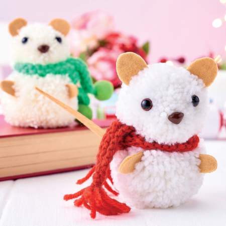 With their snowy white fur and bright festive scarves, they’d be a lovely surprise to find nestled within the branches of your Christmas tree, or maybe sitting in a wreath hanging on the wall. If you enjoy knitting as well as pom-pom making, this project is for you – alternatively you can make a scarf from a soft felt strip, clipping the ends into a fringe.