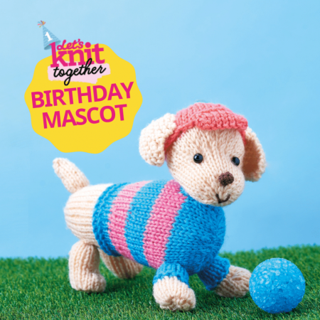 We can’t think of a better way to kickstart the party than with a knitted project, and this toy certainly hits the spot. Our sweet little fella loves nothing more than dashing around the park chasing his football in the spring sunshine. His smart striped T-shirt makes him the most dapper dog in town and is the perfect opportunity for you to improve your colour changing skills! All parts are mainly worked in stocking stitch so everyone in the club can give him a go!