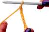 Miss the edge stitch and, with the yarn at the back, insert the hook into the vertical bar at the front of the stitch. Wrap the yarn around the hook and pull through the bar, leaving two loops on the hook.