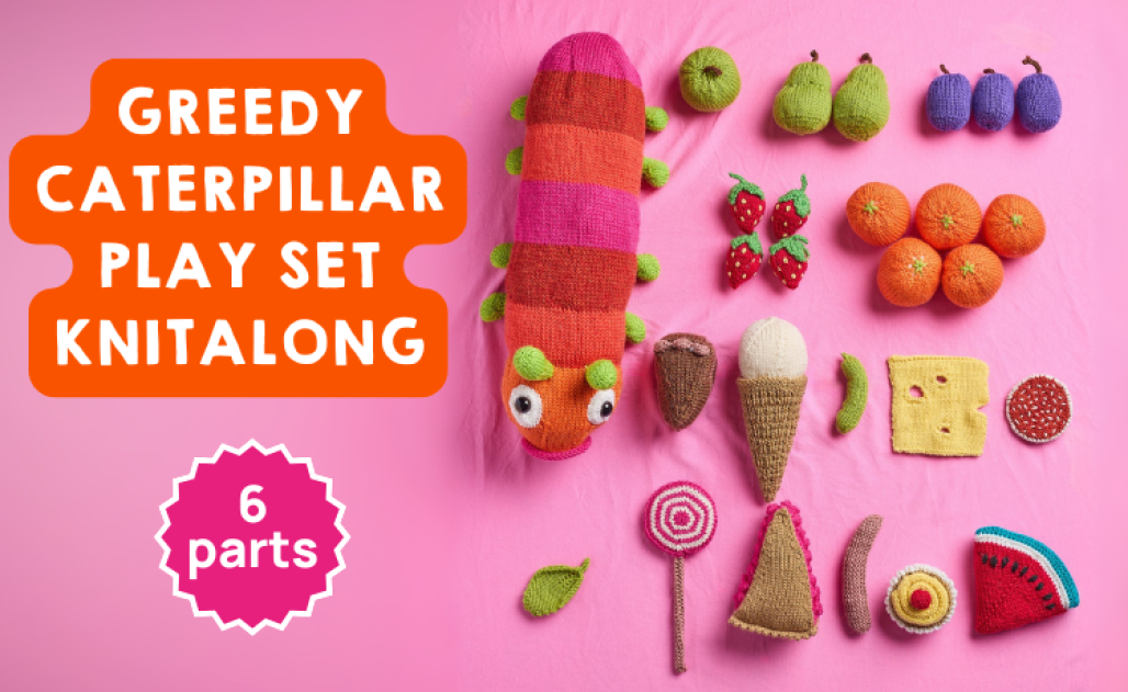 Knit Susie Johns' storytime project, which features a simple caterpillar munching its way through some tasty knitted food.