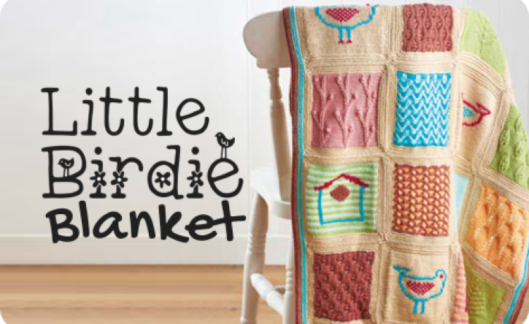 This beautiful blanket features cute bird motifs and textured stitches evoking feathers, leaves and nature – it’s bound to become a treasured heirloom.